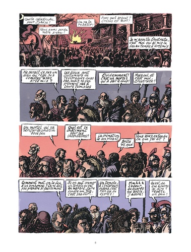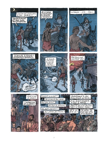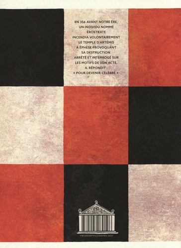 En 356 avant notre ère, un individu nommé Erostrate incendia volontairement le temple d'Artémis à Ephèse provoquant sa destruction. Arrêté et interrogé sur les motifs de son acte, il répondit : "Pour devenir célèbre" . Les sages d'Ephèse qui viennent de voir l'une des sept merveilles du monde partir en fumée ne peuvent y croire mais, même sous la torture, Erostrate persiste : s'il a détruit le temple c'est uniquement pour passer à la postérité. Une fable politique, drôle et grinçante, sur la fatuité des hommes.