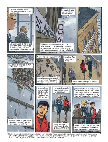 Avec Tramp, Jean-Charles Kraehn - le scénariste - et Patrick Jusseaume - le dessinateur - mettent en scène un thriller maritime captivant. Après l'Afrique, ce nouvel épisode inaugure le troisième cycle dont l'action se situe en Indochine : c'est dans cette région que Yann Calec prend le commandement d'un navire basé à Saigon. C'est aussi dans cette partie du monde, meurtrie par la guerre, qu'il retrouvera la trace de son père...