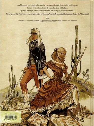 Après avoir réglé ses comptes avec le marquis de Trazegnies et vengé la mort de ses parents, Félix Sauvage vient d'accepter une mission des plus périlleuses : à la tête du 3e escadron de chasseurs d'Afrique, il doit gagner le Sinaloa pour en chasser le général juariste Corona. Mais il lui faudra pour cela franchir " L'Echine du diable ", une crête montagneuse de la Cordillère occidentale. De son côté, Esmeralda, orpheline et sans attaches, est confiée aux bons soins d'austères carmélites qui éduquent les jeunes filles à coups de martinet. Son seul espoir : que Félix l'épouse ! Elle n'a pas oublié le geste de Félix qui, en refusant une friandise qu'elle lui offrait, s'est engagé selon une antique coutume aztèque. Elle considère désormais, que le coeur de Félix lui appartient !