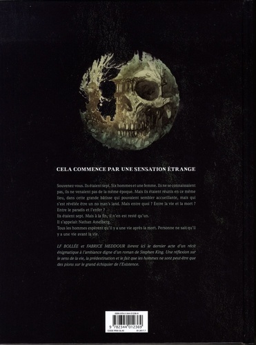 Souvenez-vous. Ils étaient sept. Six hommes et une femme. Ils ne se connaissaient pas, ils ne venaient pas de la même époque. Mais ils étaient réunis en ce même lieu, dans cette grande bâtisse qui pouvaient sembler accueillante, mais qui s'est révélée être un no man's land. Mais entre quoi ? Entre la vie et la mort ? Entre le paradis et l'enfer ? Ils étaient sept. Mais à la fin, il n'en est resté qu'un. Il s'appelait Nathan Asselberg. Tous les hommes espèrent qu'il y a une vie après la mort. Personne ne sait qu'il y a une vie avant la vie.