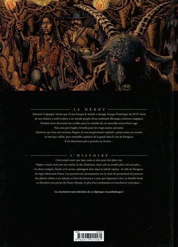 Colt & Pepper c'est le capitaine Fracasse pris dans la tourmente d'un monde où se mêlent piraterie, magie, duels pittoresques et créatures lovecraftiennes cauchemardesques. Lorsque le panache est un acte de résistance. L'étrange duo débarque en ville pour trouver Lytha, une jeune femme que Pepper s'est mis en tête de présenter à son neveu Colt. Il devient rapidement évident que l'objet de tous les désirs adolescents du neveu n'est pas une jeune femme ordinaire. A la tête d'un gang uniquement composé de femmes elle a, malheureusement pour elle, provoqué tant et tant de grabuge que Theophrastus Levi l'a vendue...