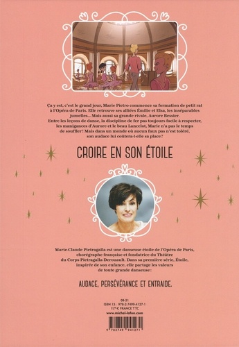 Le parcours féerique de la danseuse étoile Marie-Claude Pietragalla, adapté pour la première fois en bande dessinée Ca y est, c'est le grand jour, Marie Pietro commence sa formation de petit rat à l'Opéra de Paris ! Elle retrouve ses alliées Emilie et Elsa, les inséparables jumelles... mais aussi sa grande rivale, Aurore Bessier. Entre les leçons de danse, la discipline de fer pas toujours facile à respecter, les manigances d'Aurore et le beau Lancelot, Marie n'a pas le temps de souffler ! Mais dans un monde où aucun faux pas n'est toléré, son audace lui coûtera-t-elle sa place ?