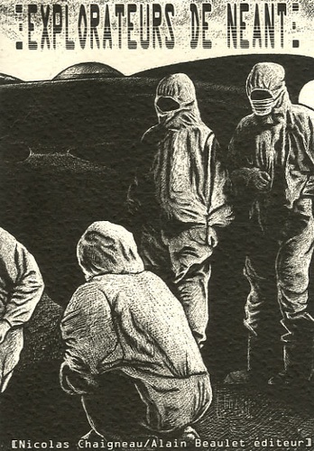 "EXPLORATEURS DE NEANT" de Nicolas CHAIGNEAU. A la découverte d'un univers intérieur en dix dessins double page. Au début était la page noire. Un espace contenant simultanément infini et néant Je flotte... dans ce bain d'obscurité que j'éclaire désespérément à la lampe torche, j'aperçois une étoile... à moins que ce ne soit une bulle... alors que je me noie, les espaces se déploient. Le ciel éclairé révèle lentement ses nuages.