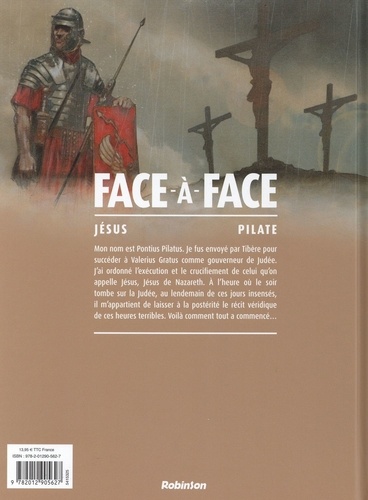 Mon nom est Pontius Pilatus. Je fus envoyé par Tibère pour succéder à Valerius Gratus comme gouverneur de Judée. J'ai ordonné l'exécution et le crucifiement de celui qu'on appelle Jésus de Nazareth. A l'heure où le soir tombe sur la Judée, au lendemain de ces jours insensés, il m'appartient de laisser à la postérité le récit véridique de ces heures terribles. Je ne sais quel devoir m'oblige à rapporter la réalité de ce que mes yeux ont vu, et de la part qu'il m'a fallu jouer dans ce procès fatidique. Voilà comment tout a commencé... Le deuxième tome de la série Face-à-Face, signé par les scénaristes Arnaud Delalande et Denis Gombert et le dessinateur Maunel Garcia, explore la confrontation entre Jésus et Pilate dont l'issue changea à jamais le cours de l'Histoire.