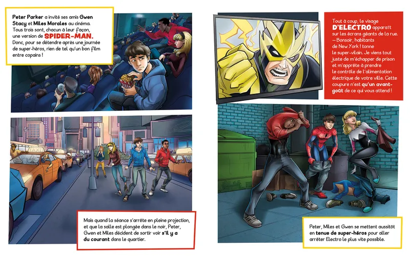 Toutes les aventures de Spider-Man dans des petits albums souples à lire comme une BD. L'histoire : Les Vilains sèment la zizanie à New York : Loki et les Géants de Glace envahissent la ville, Electro plonge Manhattan dans le noir et une mystérieuse cambrioleuse sévit dans les musées. Face à ces terribles menaces, Spider-Man et ses amis vont unir leurs forces pour livrer de spectaculaires batailles contre les malfaiteurs ! Pour les 6-9 ans.