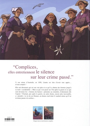 A son retour d'Australie, en 1958, Linette est loin d'avoir tout appris et tout compris ! Elle sait désormais qui est son vrai père et ce qu'il a obtenu des femmes jusqu sa mort "accidentelle". Mais ce qui s'est passé sur l'île après la guerre et ce que sont devenues les femmes du facteur présentes au cimetière, évidemment elle l'ignore ! Pourtant, peu après la guerre, un autre drame, encore plus inavouable, a plomb la vie de ces iliennes, un drame cruel dont il vaudrait mieux qu'il ne revienne jamais la surface...