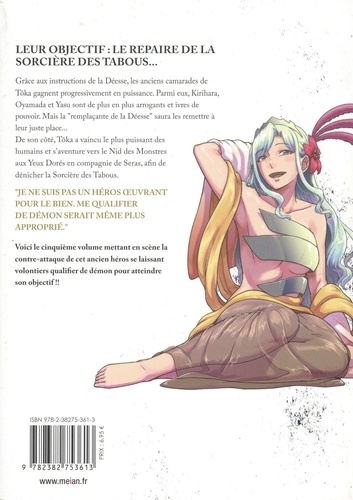 Leur objectif : le repaire de la Sorcière des Tabous... Grâce aux instructions de la Déesse, les anciens camarades de Tôka gagnent progressivement en puissance. Parmi eux, Kirihara, Oyamada et Yasu sont de plus en plus arrogants et ivres de pouvoir. Mais la "remplaçante de la Déesse" saura les remettre à leur juste place... De son côté, Tôka a vaincu le plus puissant des humains et s'aventure vers le Nid des Monstres aux Yeux Dorés en compagnie de Seras, afin de dénicher la Sorcière des Tabous. "Je ne suis pas un héros oeuvrant pour le bien. Me qualifier de démon serait même plus approprié".