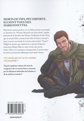 Morts ou vifs, peu importe. Ils sont tous mes marionnettes. Désormais rejoint par Eve et Liz, Tôka poursuit son périple en direction du "Nid des Monstres aux yeux dorés", repaire présumé de la Sorcière des Tabous. Seulement, le duc Svan, qui se servait d'Eve comme d'une bête de foire, a envoyé à leurs trousses une bande de sorciers prénommée "Assynt". Malgré la menace que représente ce groupe dirigé par l'astucieux Muaji, Tôka en vient à bout sans peine. Grâce à Eve et à sa puissance insoupçonnée, il écrase même les autres poursuivants débarquant juste après Assynt. "Tu crois qu'on va te laisser t'échapper ? "