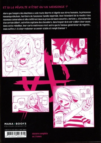 Et si la révolte n'était qu'un mensonge ? Alors que l'empire des Machines a volé toute liberté et dignité aux êtres humains, la princesse Hanamiya Kikuhoin, héritière de l'ancienne famille impériale, lève l'étendard de la révolte ! Ses nouveaux camarades et elle s'infiltrent dans la prison de haute sécurité " Horizon ", à la recherche d'un certain Gilbert, autrefois capitaine des chevaliers, dans l'espoir de le voir s'allier à leur cause. Dans cette rébellion, leur carte maîtresse n'est autre que le fameux générateur de regrets... mais suffira-t-il à leur redonner un avenir stable et rempli d'amour ?
