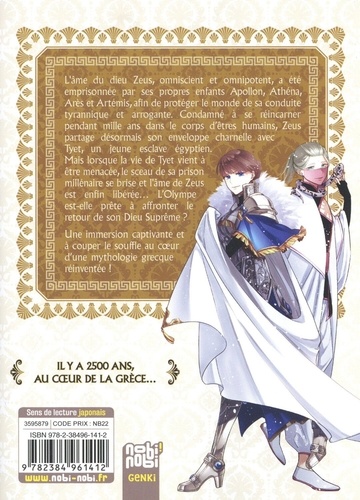 L'âme du dieu Zeus, omniscient et omnipotent, a été emprisonnée par ses propres enfants Apollon, Athéna, Arès et Artémis, afin de protéger le monde de sa conduite tyrannique et arrogante. Condamné à se réincarner pendant mille ans dans le corps d'êtres humains, Zeus partage désormais son enveloppe charnelle avec Tyet, un jeune esclave égyptien. Mais lorsque la vie de Tyet vient à être menacée, le sceau de sa prison millénaire se brise et l'âme de Zeus est enfin libérée... L'Olympe est-elle prête à affronter le retour de son Dieu Suprême ? Une immersion captivante et à couper le souffle au coeur d'une mythologie grecque réinventée !