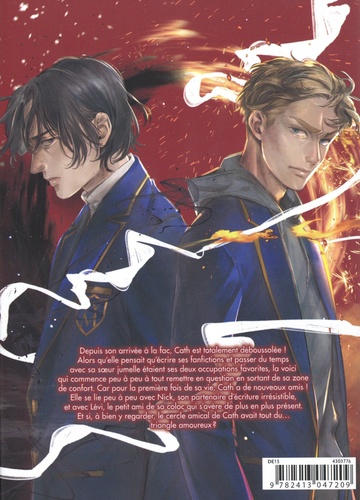 Depuis son arrivée à la fac, Cath est totalement déboussolée ! Alors qu'elle pensait qu'écrire ses fanfictions et passer du temps avec sa soeur jumelle étaient ses deux occupations favorites, la voici qui commence peu à peu à tout remettre en question en sortant de sa zone de confort. Car pour la première fois de sa vie, Cath a de nouveaux amis ! Mais si, à bien y regarder, le cercle de Cath avait tout du... triangle amoureux ?