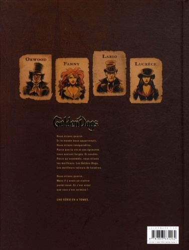 Nous étions quatre. Et le monde nous appartenait. Nous étions inséparables. Parce que la vie et ses épreuves nous avaient forgés. Et soudés. Parce qu'ensemble, nous étions les meilleurs. Les Golden Dogs. Les meilleurs voleurs de Londres. Nous étions quatre. Mais il y avait un traître parmi nous. Et c'est ainsi que tout s'est terminé !