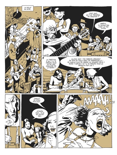 Règlement de comptes chez les gauchos. Le Grand sud de l'Amérique latine est le territoire des gauchos. Une terre aride et sauvage, coupée du monde, peuplée d'hommes rustres au sang chaud et portés sur l'alcool. Ou la gâchette, c'est selon. C'est ici que le taciturne Montoya tient un bar. Un bar où les pires canailles du coin viennent régler leurs différends ou parler de leurs déboires. Un bar où on n'est pas vraiment regardant sur le mobilier et où les bouteilles de grappa se descendent aussi rapidement qu'elles se brisent sur les cranes. Depuis le temps qu'il est derrière le comptoir, Montoya a vu des choses, des gens qui ne sont plus là pour en témoigner, et il a encore plus à raconter... Mais êtes-vous seulement prêts à l'entendre ? L'uruguayen Rodolfo Santullo et l'argentin Leandro Fernandez vous plongent dans l'univers sans pitié de ces cowboys de la terre de feu à travers une série d'histoires courtes à la violence jubilatoire. Des " brèves de comptoir " noires comme le fond d'un crachoir pour un polar rural façon Torpedo au pays des gauchos !