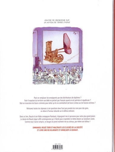 L'art de faire bouillir la débilité ambiante dans ses contradictions. Peut-on remplacer les enseignants par des distributeurs de diplômes ? Faut-il expulser du territoire son bébé ne parlant pas français quand on est patriote et républicain ? Doit-on incarcérer de futurs criminels pour éviter qu'ils ne commettent de futurs crimes sur de futures victimes ? Retrouvez toutes les réponses à ces questions dans Faut pas prendre les cons pour des gens, un album d'humour absurde sur la bêtise ordinaire. Dans ce livre, Reuzé et son fidèle compagnon Rouhaud, n'épargnent rien ni personne pour notre plus grand plaisir. Le dessin de Reuzé singe la BD contemporaine qui n'hésite pas à reprendre le même dessin sur plusieurs cases. Comme vous l'aurez compris, ce bougre ne prend vraiment rien au sérieux, pas même son éditeur ! EMMANUEL REUZE TORD ET MALTRAITE LES CLICHES DE LA SOCIETE ET LIVRE UNE BD HILARANTE ET GRINCANTE A SOUHAIT.