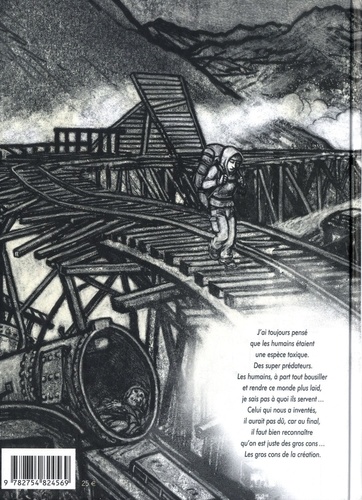 J'ai toujours pensé que les humains étaient une espèce toxique. Des super prédateurs. Les humains, à part tout bousiller et rendre ce monde plus laid, je sais pas à quoi ils servent... Celui qui nous a inventés, il aurait pas dû, car au final, il faut bien reconnaître qu'on est juste des gros cons... Les gros cons de la création. Dans un futur proche, dans un monde en plein chaos, où le capitalisme sauvage et les dérèglements climatiques ont bouleversé l'ordre des choses, une jeune femme part seule rejoindre la rébellion. Pour cela elle va devoir faire un long voyage dans une nature hostile, un voyage qui l'amènera au bout d'elle-même.