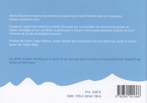 Alexis Nouaillhat expose ses dessins et aquarelles à Saint-Bonnet dans le Champsaur. Il pose un regard bienveillant et teinté d'humour sur te quotidien des femmes de guides de haute-montagne et sur ce métier si particulier à travers cette bande dessinée inspirée du livre Femmes de Guides de Brigitte Simonet. Préface de Cédric Sapin-Defour, auteur (Gravir les montagnes est une affaire de style) et chroniqueur sur Alpine Mag. Les droits d'auteur récoltés par la vente de cet ouvrage sont reversés au fond National de Solidarité des Guides de Montagne.