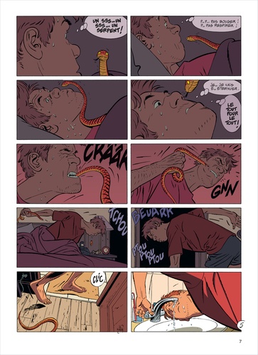 Jérôme n'est plus en sécurité nulle part. Que ce soit chez lui ou chez Babette, sa fiancée, un sinistre individu le piste sans répit, bien décidé à le faire passer de vie à trépas. L'imagination du tueur est sans limites pour mener à bien ses sombres desseins : cela va du classique tir nourri dirigé vers les fenêtres de notre héros au serpent à la morsure mortelle déposée sous sa couette. Jérôme est dans de sales draps, au propre comme au figuré. Car si les serpents changent de peaux, Jérôme n'en a qu'une. Et il y tient !