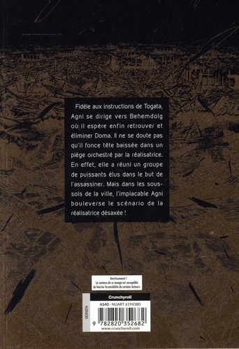 Fidèle aux instructions de Togata, Agni se dirige vers Behemdolg où il espère enfin retrouver et éliminer Doma. Il ne se doute pas qu'il fonce tête baissée dans un piège orchestré par la réalisatrice. En effet, elle a réuni un groupe de puissants élus dans le but de l'assassiner. Mais dans les sous-sols de la ville, l'implacable Agni bouleverse le scénario de la réalisatrice désaxée !