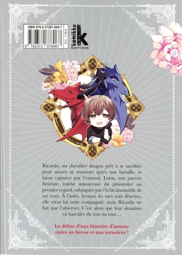Ricardo, un chevalier dragon prêt à se sacrifier pour sauver sa monture après une bataille, se laisse capturer par l'ennemi. Lotus, une pauvre fleuriste, tombe amoureuse du prisonnier au premier regard, subjuguée par l'éclat immuable de ses yeux. A l'aube, lorsque les rues sont désertes, elle vient lui tenir compagnie, mais Ricardo ne fait que l'observer. C'est alors que leur situation va basculer du tout au tout... Le début d'une histoire d'amour entre un héros et une roturière !