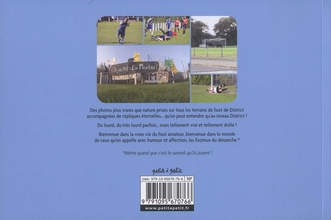 Des photos plus vraies que nature prises sur tous les terrains de foot de District accompagnées de répliques éternelles... qu'on peut entendre qu'au niveau District ! Du lourd, du très lourd parfois... mais tellement vrai et tellement drôle ! Bienvenue dans la vraie vie du foot amateur, bienvenue dans le monde de ceux qu'on appelle avec humour et affection, les footeux du dimanche.
