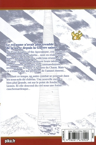 Les Four Knights of the Apocalypse, ces cavaliers annoncés par la prophétie... sont en réalité quatre jeunes adolescents ! Les voilà tous réunis, et ils ont déjà l'occasion de déployer leurs talents. Ils pulvérisent deux des Ten Commandments, revenus sous la forme d'Apôtres du Chaos. Mais ce n'étaient que les prémices de l'assaut ennemi... Pendant ce temps, un autre combat se poursuit dans les sous-sols du château. Une nouvelle menace, bien plus grande, est sur le point de fondre sur Liones. Et elle descend du ciel sous une forme cauchemardesque...