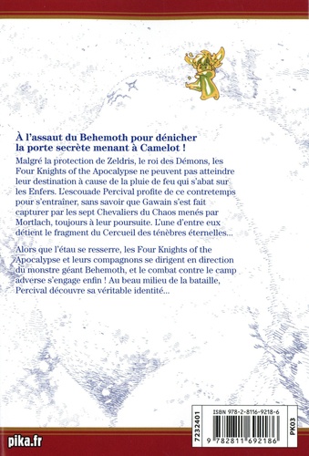 Malgré la protection de Zeldris, le roi des Démons, les Four Knights of the Apocalypse ne peuvent pas atteindre leur destination à cause de la pluie de feu qui s'abat sur les Enfers. L'escouade Percival profite de ce contretemps pour s'entraîner, sans savoir que Gawain s'est fait capturer par les sept Chevaliers du Chaos menés par Mortlach, toujours à leur poursuite. L'une d'entre eux détient le fragment du Cercueil des ténèbres éternelles... Alors que l'étau se resserre, les Four Knights of the Apocalypse et leurs compagnons se dirigent en direction du monstre géant Behemoth, et le combat contre le camp adverse s'engage enfin ! Au beau milieu de la bataille, Percival découvre sa véritable identité...