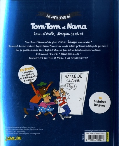 Vous croyez que c'est facile d'apprendre une leçon sur les poux, de faire une addition à 3 chiffres, de retrouver un livre de bible perdu ? Tom-Tom et Nana se donnent un mal de chien pour y arriver ! C'est qu'ils aiment l'école à la folie. La récrée aussi. D'ailleurs avec eux, école et récrée se ressemblent un peu... Retrouve quelques-uns de leurs exploits dans cet album !