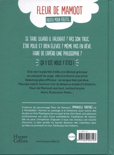 Elle dessine tout haut ce que tout le monde pense tout bas... Se taire quand il faudrait ? Pas son truc. Etre polie et bien élevée ? Même pas en rêve. Faire de l'apéro une philosophie ? Ca y est, vous y êtes ! Si la vie n'a pas fait d'elle une déesse grecque ou une prof de yoga, elle lui a fourni une arme beaucoup plus efficace : sa langue bien pendue. Mauvais esprit, humour noir et absence totale d'inhibition, Fleur de Mamoot ose tout, surtout le pire. Alors, foutu pour foutu... "Avec ses formes girondes et sa tignasse rouge, Fleur de Mamoot ne passe pas inaperçue. Mais ce sont ses réparties sur le quotidien des femmes qui fait mouche. Epilation, relations amoureuses, sport, mauvaise foi, écologie, tics et tocs de société ... Elle croque tout avec humour et pas mal de dérision. On adhère à sa vision de la vie : syons-nous-même ! " AVANTAGES "On se reconnait, on envie son culot, on se réjouit de son à-propos, on applaudit sa dégaine hallucinante et son aisance. " PRIMA "CINQUANTE NUANCES DE GRAS. Elle est ronde, fumeuse et elle aime picoler même si elle essaie de faire bonne figure au cours de gym [, ,, ] Au travers du récit de sa vie de nana décomplexée, Fleur de Mamoot dit tout haut ce que beaucoup de femmes pensent tout bas " PUBLIC "DECAPANT. Elle est gaffeuse, envieuse, rondelette et sans complexe. Elle s'appelle Fleur de Mamoot et fait mouche à chaque fois. Elle adore dire tout haut ce que d'aucuns pensent tout bas et cela ne nous déplaît pas. Loin de là ! " FEMME ACTUELLE "Emmanuelle Martinez, dite Fleur de Mamoot, publie un recueil de ses dessins tendres et drôlissimes qui racontent la vie des femmes : forme et formes, drague et couple, maternité déglinguée, écologie à moitié, tout y passe, et c'est souvent hilarant " CA M'INTERESSE SANTE "Les aventures d'une jeune femme exubérante au franc-parler qui ose tout, surtout le mauvais esprit et l'humour noir " . LIVRES HEBDO "La dessinatrice et son double de papier [Fleur de Mamoot] cultivent l'humour noir et l'amour vache, oscillent entre franche naïveté et intense mauvaise foi . Avec cette première bande-dessinée, Emmanuelle Martinez nous fait une sacrée fleur " MIDI LIBRE ""Fleur de Mamoot", l'anti-guide de la femme parfaite en BD. Fleur de Mamoot est le cadeau sympa à offrir à sa meilleure pote. Chacune peut en effet se reconnaître dans les situations que traverse l'héroïne sans jamais se laisser abattre " TERRA FEMINA "Foutu pour foutu... telle sera donc notre devise ! Hilarant et stop complexe ! " Coup de coeur libraire "Coup de coeur pour cette illustratruce à la langue bien pendue et à l'humour décapant. Elle est drôle et féministe assumée". Coup de coeur libraire A propos de l'auteur : Créatrice du personnage Fleur de Mamoot, Emmanuelle Martinez vit à Montpellier. Hormis un passage à la Sorbonne pour suivre des études en Arts Plastiques (et occuper le bar d'en face), son parcours professionnel est celui d'une autodidacte. Facétieuse de nature, elle ne peut s'empêcher d'ajouter à tous ses travaux une touche d'humour, si bien qu'elle ne saurait dessiner des colombes sans qu'elles se prennent un mur. Pareil pour les chatons.