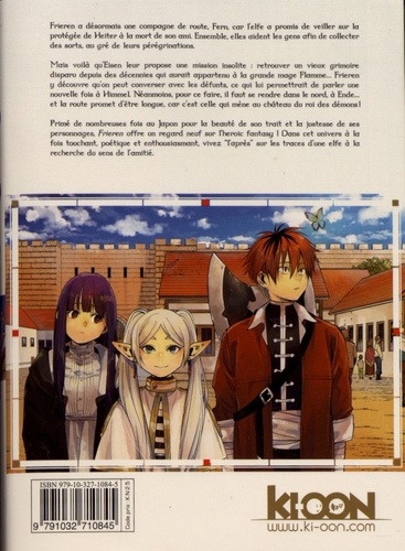 Frieren a désormais une compagne de route. Fern, car l'elfe a promis de veiller sur la protégée de Heiter à la mort de son ami. Ensemble, elles aident les gens afin de collecter des sorts, au gré de leurs pérégrinations. Mais voilà qu'Eisen leur propose une mission insolite : retrouver un vieux grimoire disparu depuis des décennies qui aurait appartenu à la grande mage Flamme... Frieren y découvre qu'on peut converser avec les défunts, ce qui lui permettrait de parler une nouvelle fois à Himmel. Néanmoins, pour ce faire, il faut se rendre dans le nord, à Ende... et la route promet d'être longue, car c'est celle qui mène au château du roi des démons ! Primé de nombreuses fois au Japon pour la beauté de son trait et la justesse de ses personnages, Frieren offre un regard neuf sur l'heroic fantasy ! Dans cet univers à la fois touchant, poétique et enthousiasmant, vivez "l'après" sur les traces d'une elfe à la recherche du sens de l'amitié.
