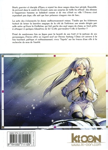 Que deviennent les héros une fois le mal vaincu ? Stark, guerrier et disciple d'Eisen, a rejoint les deux mages dans leur périple. Ensemble, ils arrivent dans le comté de Granat, mais une surprise de taille les attend : des démons à l'apparence humaine se baladent comme si de rien n'était en ville ! Frieren n'est cependant pas dupe, elle sait que leur présence n'augure rien de bon... La suite des événements lui donne malheureusement raison. Tandis que les éclaireurs tentent de briser la barrière magique de la cité de l'intérieur, une armée dirigée par nulle autre qu'Aura la Guillotine, qui fait partie des sept sages du chaos, se tient prête à attaquer à quelques kilomètres de là ! L'elfe parviendra-t-elle à l'arrêter ?