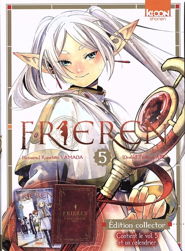 Un contenu premium directement inspiré du collector réalisé pour le marché japonais ! Retrouvez l'univers de Frieren dans cette édition collector contenant : - le tome 5 avec une jaquette alternative réversible - un calendrier 2023 avec des illustrations à découvrir chaque mois Dans ce tome 5 : Stark, guerrier et disciple d'Eisen, a rejoint les deux mages dans leur périple. Ensemble, ils arrivent dans le comté de Granat, mais une surprise de taille les attend : des démons à l'apparence humaine se baladent comme si de rien n'était en ville ! Frieren n'est cependant pas dupe, elle sait que leur présence n'augure rien de bon... La suite des événements lui donne malheureusement raison. Tandis que les éclaireurs tentent de briser la barrière magique de la cité de l'intérieur, une armée dirigée par nulle autre qu'Aura la Guillotine, qui fait partie des sept sages du chaos, se tient prête à attaquer à quelques kilomètres de là ! L'elfe parviendra-t-elle à l'arrêter ?