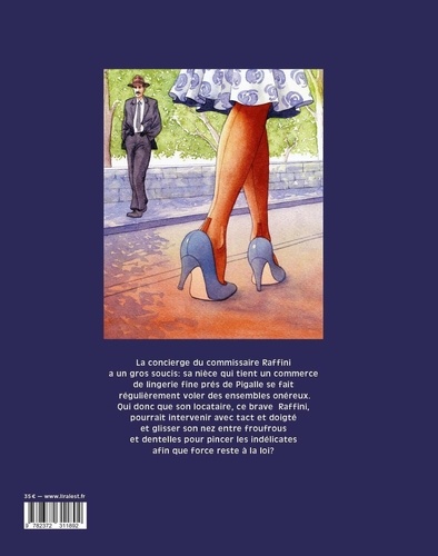 Cette édition originale tirée à 350 ex comprend une sérigraphie 16X24 cm est numérotée et signée par Maucler. La concierge du commissaire Raffini a un gros souci : Sa nièce qui tient un commerce de lingerie fine près de Pigalle, se fait régulièrement voler des ensembles onéreux. Qui donc que ce brave Raffini pourrait intervenir avec tact et doigté et glisser son nez entre froufrous et dentelles pour pincer les indélicates afin que force reste à la loi ?