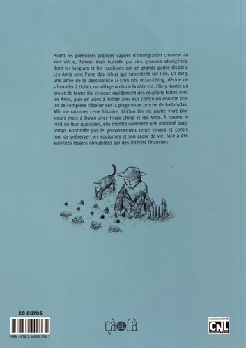 Avant les premières grandes vagues d'immigration chinoise au XVIIe siècle, Taïwan était habitée par des groupes aborigènes, dont les langues et les traditions ont en grande partie disparu. Les Amis sont l'une des tribus qui subsistent sur l'île. En 2013, une amie de la dessinatrice Li-Chin Lin, Hsiao-Ching, décide de s'installer à Dulan, un village Amis de la côte est. Elle y monte un projet de ferme bio et noue rapidement des relations fortes avec les Amis, puis en vient à militer avec eux contre un énorme projet de complexe hôtelier sur la plage toute proche de Fudafudak. Afin de raconter cette histoire, Li-Chin Lin est partie vivre plusieurs mois à Dulan avec Hsiao-Ching et les Amis. A travers le récit de leur quotidien, elle montre comment une minorité longtemps opprimée par le gouvernement tente envers et contre tout de préserver ses coutumes et son cadre de vie, face à des autorités locales obnubilées par des intérêts financiers.