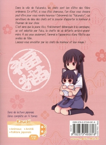 Dans la ville de Fukuneko, les chats sont loin d'être des félins ordinaires. En effet, si vous êtes chanceux, l'un d'eux vous choisira peut-être pour vous rendre heureux ! Dénommés les "fukuneko", ces serviteurs du dieu des chats ont le pouvoir d'apporter le bonheur à l'humain de leur choix. C'est ainsi que la jeune Ako, fraîchement débarquée à la campagne, se voit adoptée par Fuku, la chatte de sa défunte arrière-grand-mère. A ses yeux seulement, l'animal a l'apparence d'une fillette aux oreilles de félin... Laissez-vous envoûter par les chats du bonheur et leur magie !