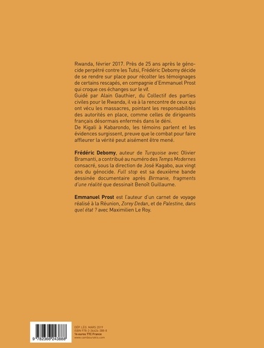 Rwanda, février 2017. Près de 25 ans après le génocide perpétré contre les Tutsi, Frédéric Debomy décide de se rendre sur place pour récolter les témoignages de certains rescapés, en compagnie d'Emmanuel Prost qui croque ces échanges sur le vif. Guidé par Alain Gauthier, du Collectif des parties civiles pour le Rwanda, il va à la rencontre de ceux qui ont vécu les massacres, pointant les responsabilités des autorités en place, comme celles de dirigeants français désormais enfermés dans le déni. De Kigali à Kabarondo, les témoins parlent et les évidences surgissent, preuve que le combat pour faire affleurer la vérité peut aisément être mené.