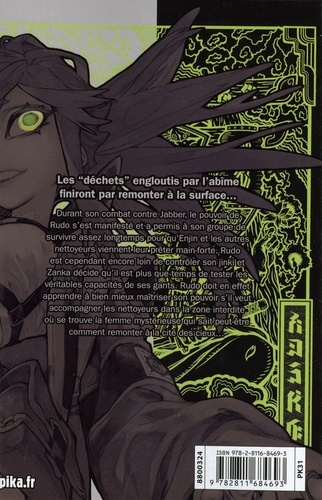 Durant son combat contre Jabber, le pouvoir de Rudo s'est manifesté et a permis à son groupe de survivre assez longtemps pour qu'Enjin et les autres nettoyeurs viennent leur prêter main-forte. Rudo est cependant encore loin de contrôler son jinki et Zanka décide qu'il est plus que temps de tester les véritables capacités de ses gants. Rudo doit en effet apprendre à bien mieux maîtriser son pouvoir s'il veut accompagner les nettoyeurs dans la zone interdite où se trouve la femme mystérieuse qui sait peut-être comment remonter à la cité des cieux...