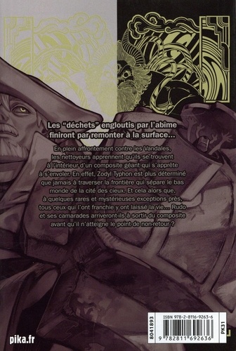 Les "déchets" engloutis par l'abîme finiront par remonter à la surface... En plein affrontement contre Vandales, les nettoyeurs apprennent qu'ils se trouvent à l'intérieur d'un composite géant qui s'apprête s'envoler. En effet, Zodyl Typhon est plus déterminé que jamais à traverser la frontière qui sépare le bas monde de la cité des cieux. Et cela alors que, à quelques rares et mystérieuses exceptions près, tous ceux qui l'ont franchie y ont laissé la vie... Rudo et ses camarades arriveront-ils a sortir du composite avant qu'il n'atteigne le point de non-retour ?