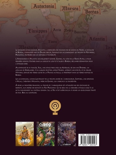 Le royaume le plus avancé, Atlantia, à repoussé une invasion de ses voisins du nord, le royaume de Boréas, commandes par. un druide obscur, Irandius qui accompagnait les troupes du roi Boréo, Prokopios, protégées par un sortilège d'invisibilité. L'ambassadeur d'Atlantia nouvellement nommé, Gadiro, fils aîné de la reine Actea, a pour première mission d'entrer dans la gueule du loup et d'aller à Boréas, réclamer réparation pour l'attaque subie. Accompagne de sa fiancée, Xail, une otage prise chez les Aztèques, de son ami Phembo, un africain de Sénégambie, d'un garçon égyptien appelé Naeem, apprenti architecte, et du druide Wythrin, expulse des terres celtes de la France actuelle, ils pénètrent dans les terres hostiles de boréas. Les accompagne, comme lieutenant de la troupe armée de l'ambassadeur, Sapphira, une espionne d'Atlas, l'héritière d'Atlantia, frère de Gadiro, qui cherche à le discréditer. A peine la frontière franchie, la troupe de l'ambassadeur est attaquée par des centaines de serpents, aux ordres des enfants du roi Prokopios. Ce ne sera pas la dernière attaque jusqu'à ce qu'ils parviennent au château ennemi. Là, le roi n'est guère enclin à signer un quelconque traité de paix. Bien au contraire.
