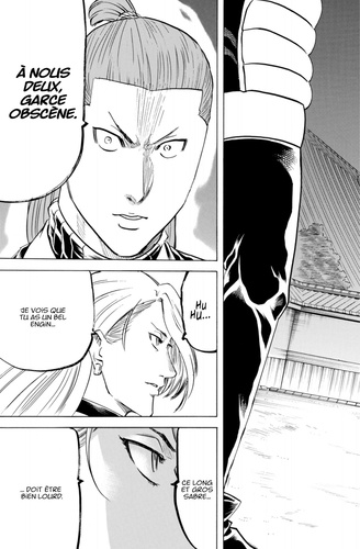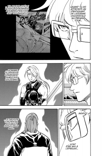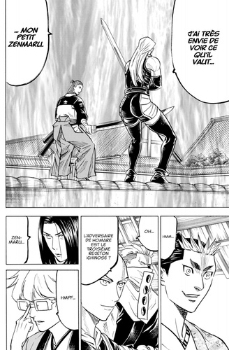 Séisme dans le château d'Edo ! Une seule éraflure suffit à empoisonner son adversaire. Dans ce combat qui se joue en un coup, Gama déploie toute sa nouvelle force face à l'ingéniosité de Yagira. Alors que le public est hypnotisé par le combat, les Genkai Tempei passent enfin à l'action !!