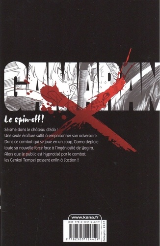 Le spin-off ! Séisme dans le château d'Edo Une seule éraflure suffit à empoisonner son adversaire. Dans ce combat qui se joue en un coup. Gama déploie toute sa nouvelle force face à l'ingéniosité de Yagira. Alors que le public est hypnotisé parle combat, les Genkai Tempei passent enfin à l'action !!