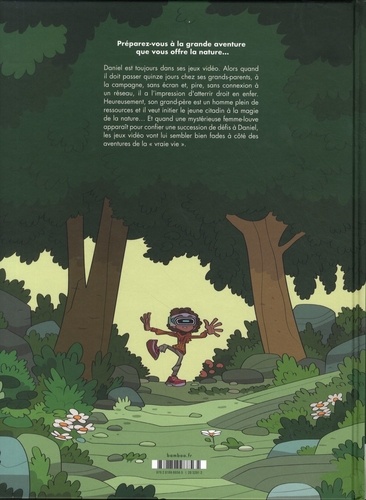 Préparez-vous à la grande aventure que vous offre la nature... Daniel passe sa vie collé à ses jeux vidéo. Alors quand il doit passer quinze jours chez ses grands-parents, à la campagne, sans écran et, pire, sans connexion à un réseau, il a l'impression d'être en enfer. Et ce ne sont pas les jeux de société d'un autre temps qui l'aideront à moins s'ennuyer. Heureusement, son grand-père est un homme plein de ressources. Il se met en tête d'initier le jeune citadin aux petits plaisirs de la nature : faire des ricochets, cueillir des fruits, se baigner dans la rivière... Et quand une mystérieuse femme-louve apparaît pour confier une succession de missions à Daniel, les jeux vidéo paraissent vite bien fades à côté des aventures de "la vraie vie".