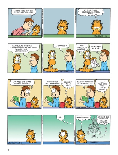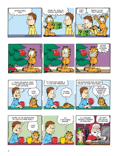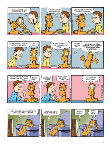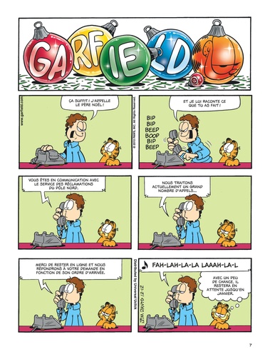 Noël ! Noël ! C'est bientôt NO-ËL ! Garfield ne sait plus où donner de la tête. Entre écrire les listes de cadeaux au père Noël, essayer de compenser en quelques jours tous les mauvais coups faits le reste de l'année, et, en plus, s'assurer que Jon n'oublie rien dans la préparation des courses pour le repas, Garfield en perd… la boule !