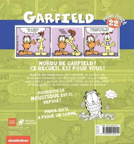 Plus de 250 pages remplies à craquer de blagues et de bandes dessinées : un véritable festin ! Collectionnez les tomes 21 à 30 pour découvrir l'image au dos des livres et régalez-vous de ces Poids lourd dignes de Garfield.