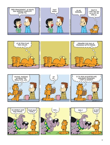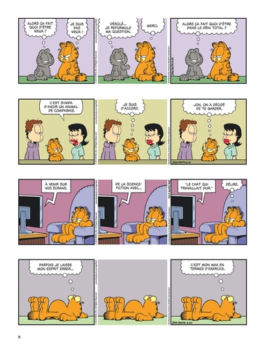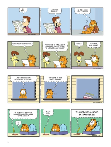 Ranger sa chambre, quelle utilité ? Il est tellement pratique d'avoir tout à portée de pattes : télécommande, pizza, Jon pour commander la pizza, Odie pour s'amuser et Pooky pour les câlins, Nermal pour... non, pas Nermal. Il est trop mignon, il tire toujours la couverture à lui. Et pour Garfield, le bon ordre c'est toujours lui d'abord, les autres ensuite... s'il reste quelque chose.