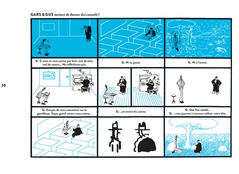 Ils pourraient s'appeler Coco et Loulou. Bidule et Machin ou Pierre et Paul. Qu'ils rejouent le plus éculé des gags (la bonne vieille peau de banane) ou qu'ils se fassent du thé, ils semblent n'avoir qu'un but : visiter, revisiter les plis et replis de la bande dessinée. Et c'est tout à fait normal. Ils SONT personnages de bande dessinée.