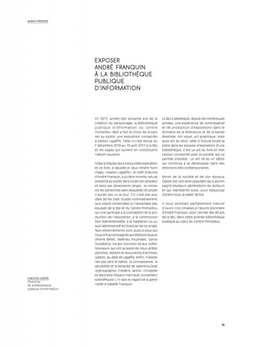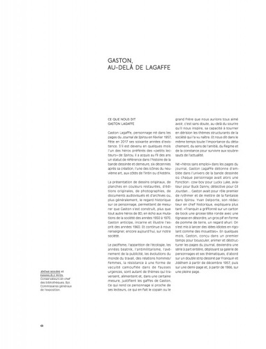 Alors que les Editions Dupuis célèbreront en 2017, les 60 ans de Gaston Lagaffe, la Bpi du Centre Pompidou lui consacre une exposition qui se tiendra du 7 décembre 2016 au 10 avril 2017. Cet ouvrage nous révèle les coulisses du travail de Franquin, la pertinence de son regard sur une société en permanente évolution et son lien infini avec ce personnage. En 1957, personne n'avait perçu autant que lui combien la jeunesse aspirait à de nouvelles valeurs, dont les évènements de Mai 68 marquèrent l'avènement. Gaston, héros sans emploi, mais héros de son époque assurément. Ce catalogue d'exposition de plus de 200 pages est riche d'une iconographie de grande qualité, alternant les documents d'archives, les photographies ou les dessins originaux, chaque fois mis en lumière par de nombreux extraits d'entretiens et commentaires de Franquin lui-même. Nul doute que ce catalogue réjouira tous les amateurs de cette oeuvre hors norme et deviendra rapidement un livre de référence.