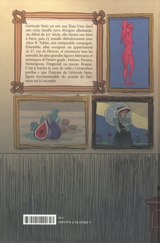 Gertrude Stein est née aux Etats-Unis dans une riche famille juive d'origine allemande. Au début du XXe siècle, elle rejoint son frère à Paris, puis s'y installe définitivement avec Alice B. Toldas, son inséparable compagne. Ensemble, elles occupent un appartement au 27, rue de Fleurus, et réunissent tous les samedis, les plus grandes figures littéraires et artistiques de l'avant-garde : Matisse, Picasso, Hemingway, Fitzgerald ou encore Braque. C'est à travers la voix de cette "Génération perdue" que l'histoire de Gertrude Stein, figure incontournable du monde de l'art, nous est ici racontée.