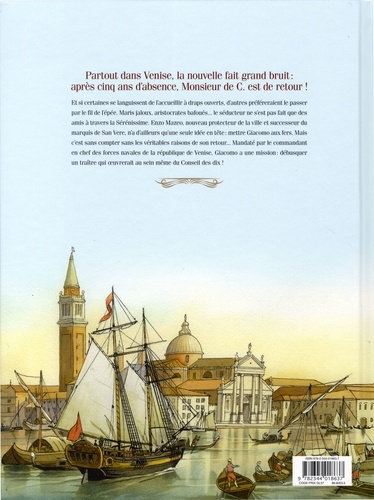 Partout dans Venise, la nouvelle fait grand bruit : après cinq ans d'absence, Monsieur de C. est de retour ! Et si certaines se languissent de l'accueillir à draps ouverts, d'autres préféreraient le passer par le fil de l'épée. Maris jaloux, aristocrates bafoués... le séducteur ne s'est pas fait que des amis à travers la Sérénissime. Enzo Mazeo, nouveau protecteur de la ville et successeur du marquis de San Vere, n'a d'ailleurs qu'une seule idée en tête : mettre Giacomo aux fers. Mais c'est sans compter sans les véritables raisons de son retour... Mandaté par le commandant en chef des forces navales de la république de Venise, Giacomo a une mission : débusquer un traître qui oeuvrerait au sein même du Conseil des dix !