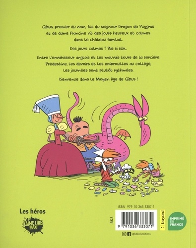 Gibus, premier du nom, fils du seigneur Drogon de Puygras et de dame Francine vit des jours heureux et calmes dans le château familial, entouré de Giboulette, sa soeur, l'espiègle mémé Pâquerette et Sicorde, son mouton de compagnie. Des jours calmes ? Pas si sûr... Entre l'envahisseur Anglois et les mauvais tours de la sorcière Prédestine, les devoirs et les embrouilles au collège, les journées sont plutôt rythmées. Bienvenue dans le Moyen Age de Gibus !