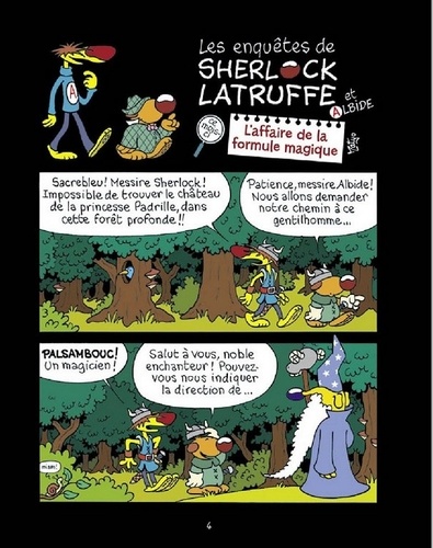 Sherlock Latruffe est détective. Flanqué de son grand dadais d'assistant Albide, il mène des enquêtes, résout des énigmes, déchiffre des codes et crie "GIGAWATT" quant tout s'éclaire. Ceci dit, Sherlock apprécierait un peu d'aide... La tienne, notamment ! Alors observe bien les cases, écoute les alibis des suspects, note tous les détails, et tu parviendras à crier "GIGAWATT ! " avant Sherlock !